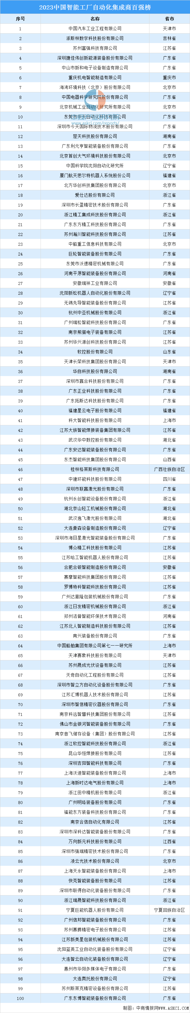 具体榜单如下:中商谍报网讯:近年来,烦请联系,互联网周刊发布“2023中国智能工场从动化集成商百强榜”。